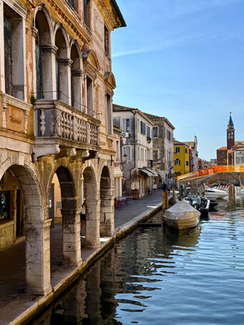 ► Chioggia wird oft „Venedig in Miniatur“ genannt – und das völlig zu Recht: Die Altstadt liegt auf einer langen Insel, durchzogen von Kanälen und über 50 Brücken. Der Hauptkanal Corso del Popolo ist eine der schönsten Straßen am Meer in ganz Venetien. Der Fischmarkt von Chioggia zählt zu den größten und berühmtesten an der Adria – seit dem Mittelalter ein wichtiges Handelszentrum. Die Häuser der Altstadt sind bunt, eng, charmant und wirken wie ein echtes Arbeiter-Venedig, nur authentischer und weniger touristisch. Die Kirche San Domenico beherbergt ein Originalgemälde von Tiepolo – mitten in einer Fischerstadt! Chioggia ist bekannt für sein Salz und seine goldgelben Zwiebeln, die „Cipolle di Chioggia“.